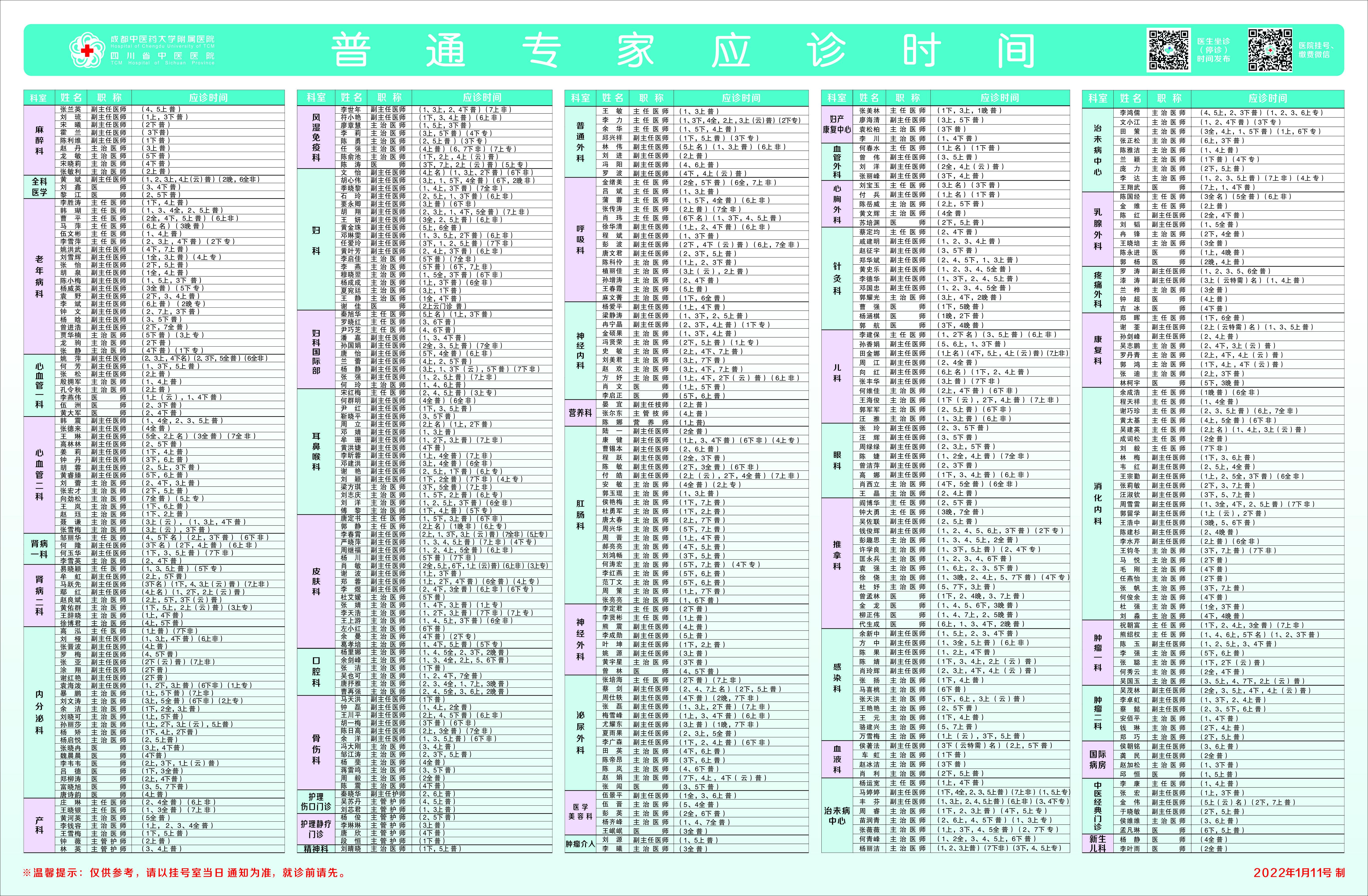 2022年(nian)普通(tong)專(zhuan)傢(jia)應診時間